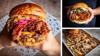 Signature menu include PB+JJ burger, a double patty topped with peanut butter and bacon jam; the Great White Buffalo burger with buttermilk chicken, American cheese, smoked bacon, buffalo hot sauce and purple ‘slaw; and the eponymous Fat Hippo burger featuring a double patty, American cheese, smoked bacon, chorizo, onion rings and ‘Fat Hippo sauce’.