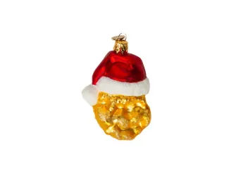The creation is made of glass and features the McNugget adorned with a Santa hat.