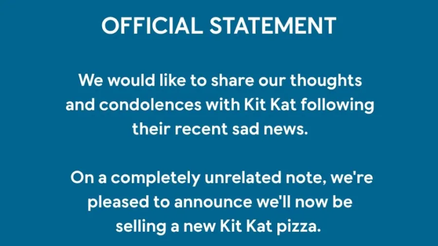 Domino's UK pokes fun at KitKat after 12-ton theft statement.